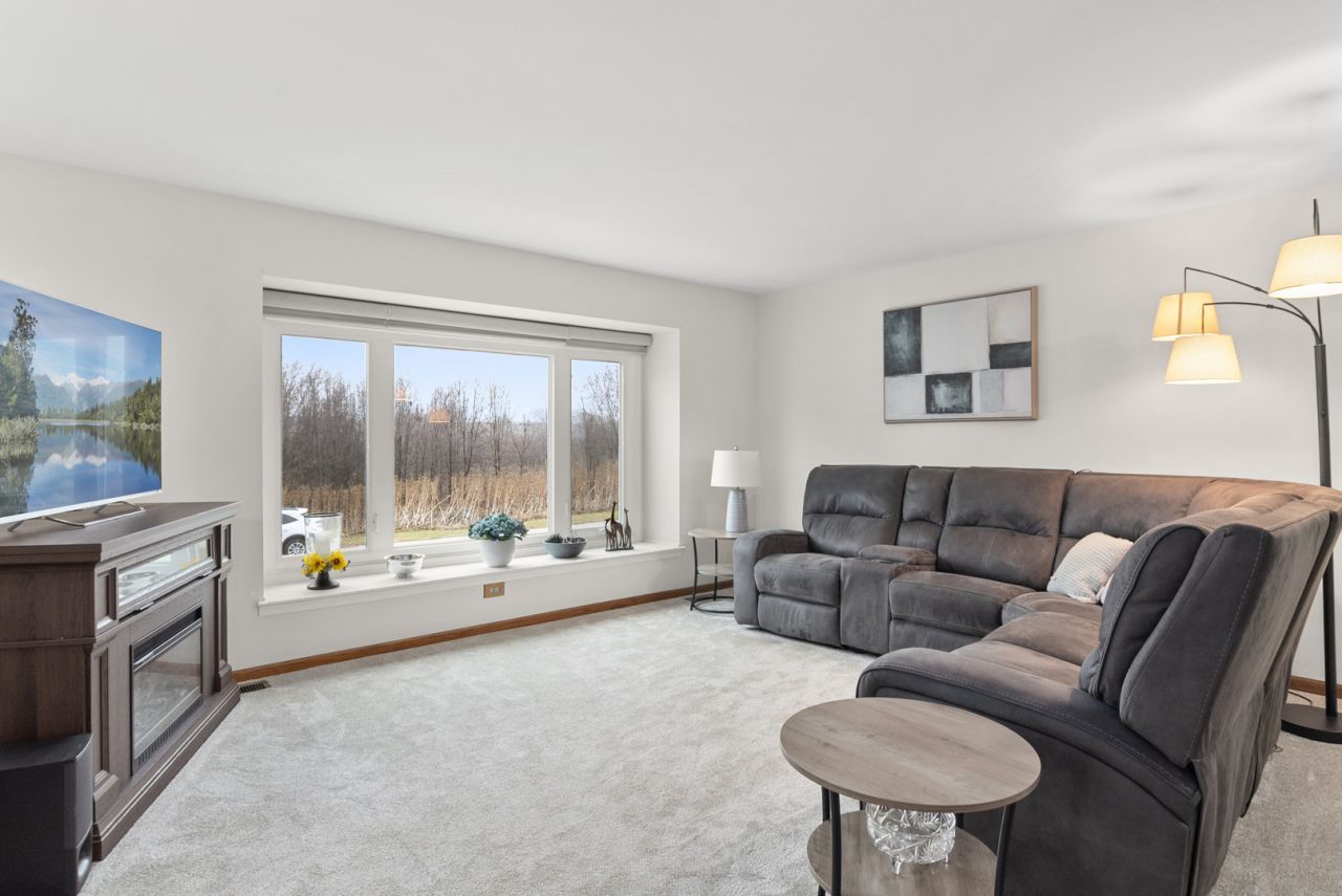Enjoy maintenance-free living in this beautifully updated townhome ideally located just minutes from vibrant downtown Tinley Park, restaurants, shops, Metra, and entertainment. Perfectly positioned in a cul-de-sac with scenic views, the home overlooks peaceful nature and grasslands from the front and open green space in the back, offering a rare sense of privacy and nature. Step inside and immediately notice the freshly painted interior, brand new carpet, and updated vinyl flooring that flows throughout the home. The inviting living room is filled with natural light from a large picture window replaced in 2010 and is enhanced with Hunter Douglas shades installed in 2022. A stylish powder room just off the main living area was updated in 2021 with a new vanity, flooring, and mirror. The large eat-in kitchen was updated in 2010 and features solid oak cabinets with soft-close doors, quartz countertops, a tile backsplash, island with breakfast bar seating, and a new microwave installed in 2026. Just beyond the kitchen, the comfortable family room offers a great space for relaxing or entertaining and features a sliding glass door replaced in 2021 that leads to the new deck installed in 2024-perfect for enjoying the serene open green space views. Upstairs, the primary bedroom suite offers a large walk-in closet and a beautifully remodeled private bathroom completed in 2021. Two additional generously sized bedrooms provide plenty of space for family, guests, or a home office, and the full hall bathroom includes a skylight that fills the space with natural light. The finished basement adds valuable living space with a dedicated office area, laundry room with vinyl flooring installed in 2024, and excellent storage. Major mechanical updates include a new furnace and air conditioning system installed in 2023 along with a humidifier and a sump pump installed in 2024. Additional updates include the attached garage with a new overhead door and opener installed in 2023. Outside, the professionally landscaped grounds enhance the home's curb appeal while the surrounding natural views create a peaceful setting rarely found in townhome living. Move-in ready and thoughtfully updated, this home offers the perfect combination of comfort, convenience, and scenic surroundings in a highly desirable Tinley Park location.